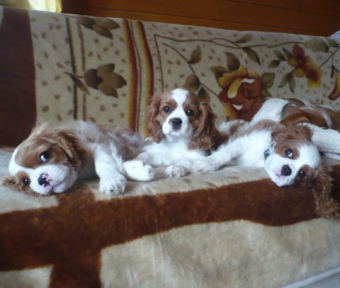 Już 11 tygodni są z nami słodkie małe cavalierki. Uwielbiają zabawę w berka, szalone gonitwy i łóżeczkowe przytulanie nad ranem:)))
