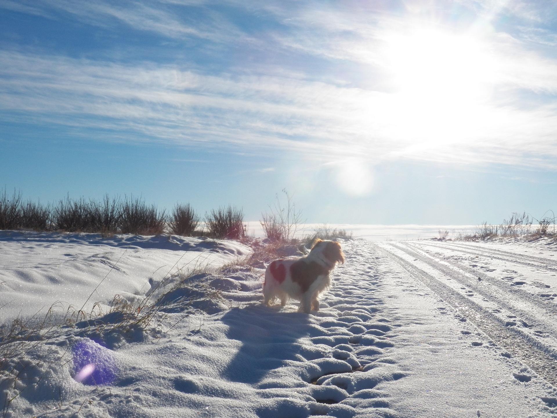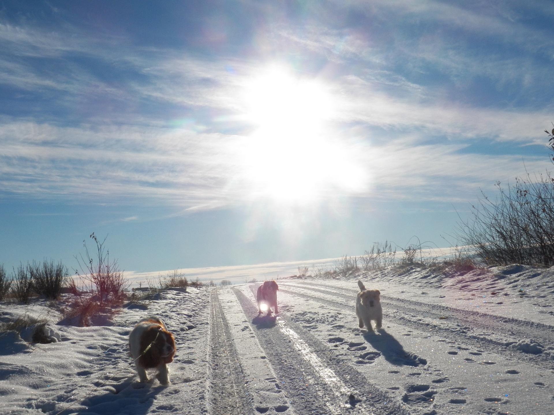 Dzisiejszy spacer w pięknej zimowej aurze. Słońce wspaniale skrzyło się na pierwszym w tym sezonie śniegu na łąkach.