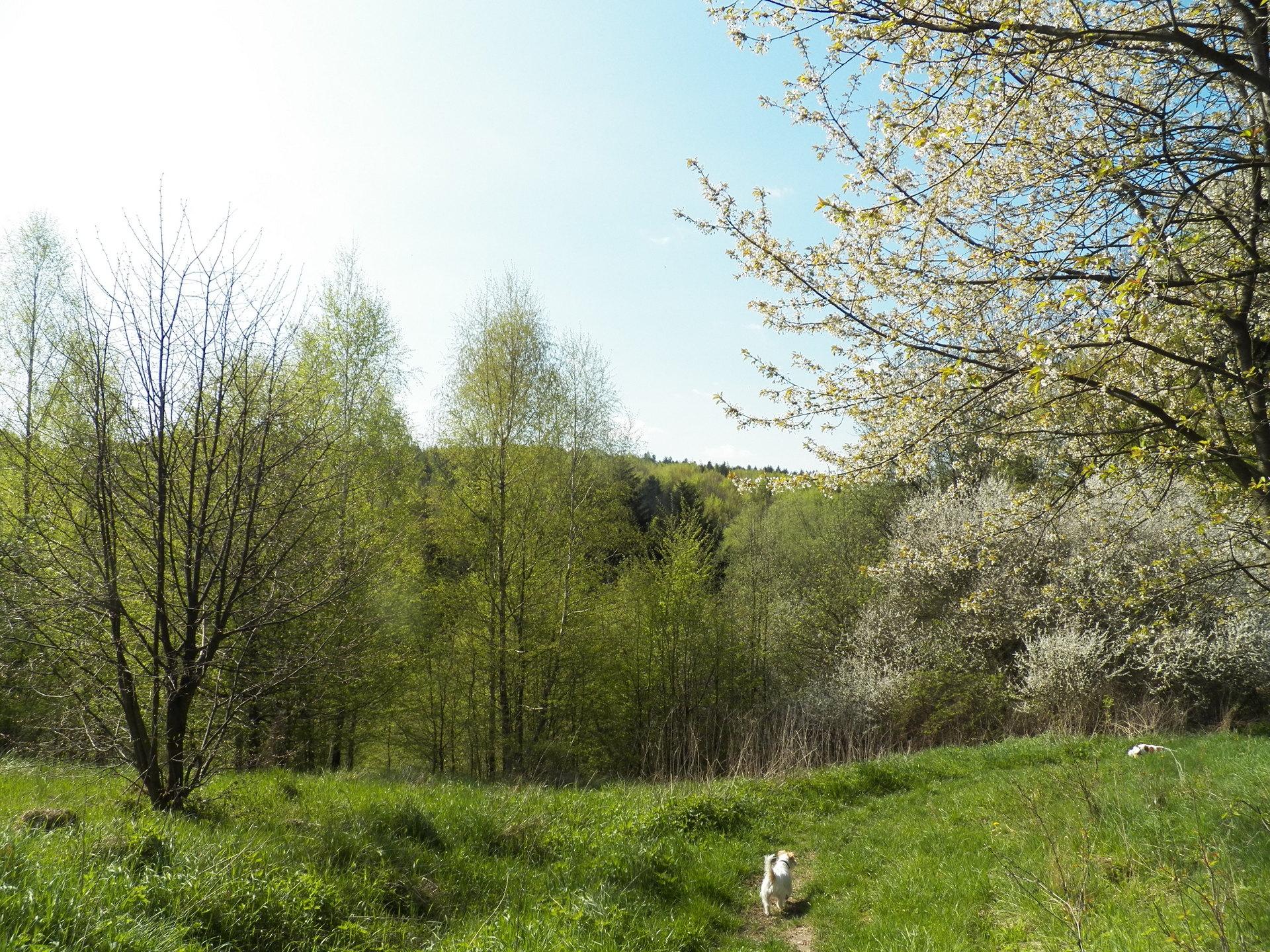 Korzystamy ze słońca i pięknych okoliczności przyrody. Szkoda tylko że młoda zieleń buków, biało kwitnące drzewa i łąki żółte od majów nie będą zbyt długo cieszyć oczu.