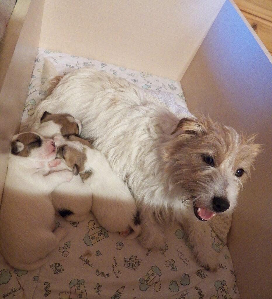 Córeczki Neli pięknie rosną, widzą i słyszą. Bardzo dzielnie przeszły pierwsze odrobaczenie i pomalutku zaczynają jeść rozmoczoną karmę. Oczywiście pyszne mleczko mamy to nadal podstawa, a Nela karmi je bardzo dobrze – straszne z nich grubaski :). Szczęśliwa mamusia natomiast skończyła 3 lata.